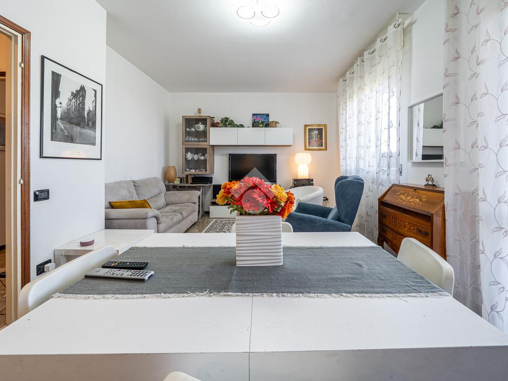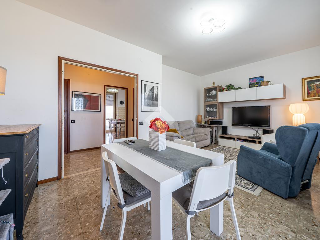 L’appartamento si apre su un ingresso che conduce ad una zona giorno ampia e accogliente, dove la luce entra generosa.