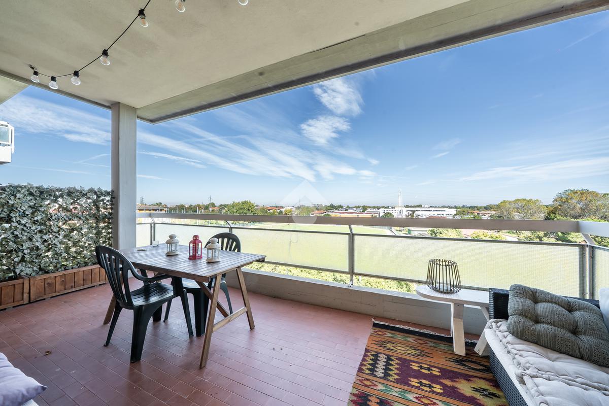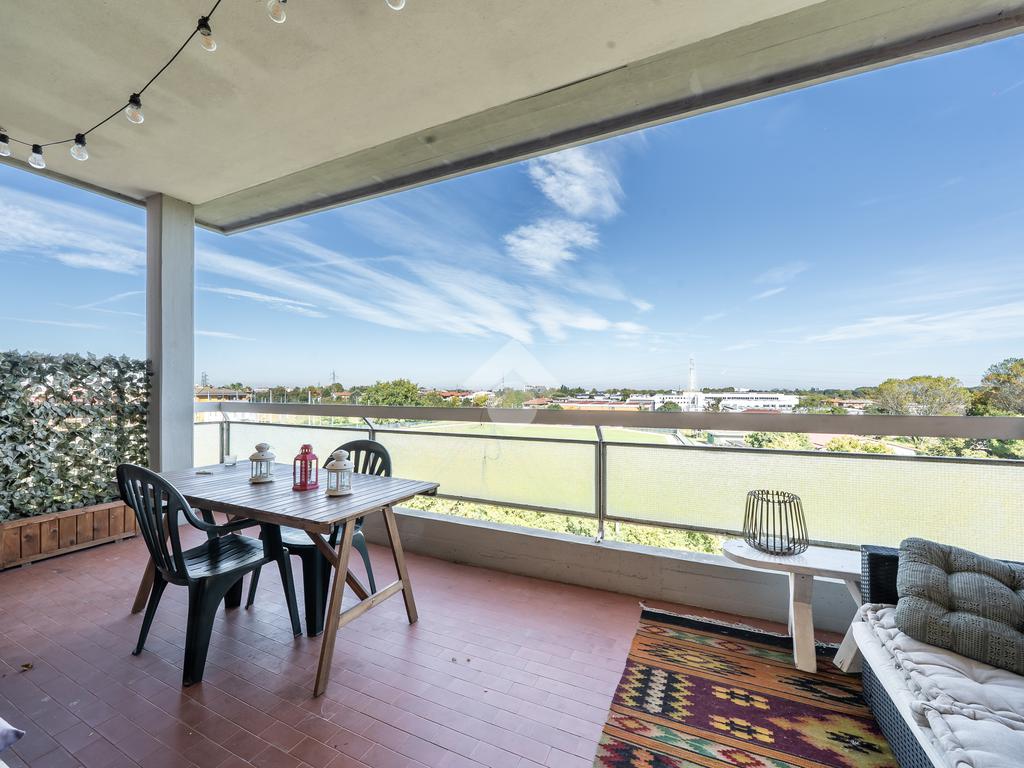 Dal soggiorno si accede ad un terrazzo vivibile ed arredabile, ideale per una colazione all’aperto o semplicemente per rilassarsi godendo di una vista libera, senza edifici a togliere respiro all’orizzonte.
